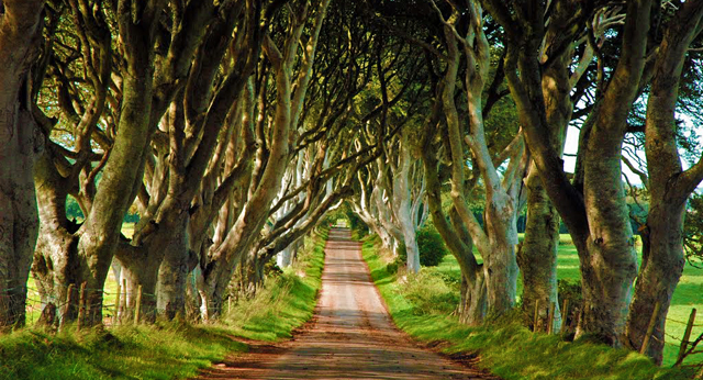 King's Road, a norte de King's Landing, cujo equivalente real se trata das Dark Hedges, uma avenida de árvores plantada pela família Stuart no séc. XVIII como um acto sublime de paisagismo para impressionar os visitantes.