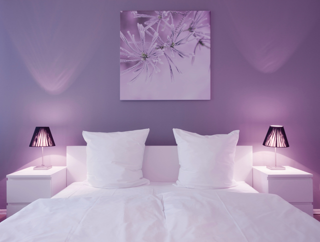 O roxo, quando utilizado em tons mais escuros, como o beringela, por exemplo, é uma cor associada ao luxo e a criatividade, podendo conferir um efeito bastante rico, dramático e sofisticado a qualquer ambiente. Os tons mais claros, como o lavanda, o lilás e até mesmo alguns tons de rosa, têm o mesmo efeito relaxante e de calma que alguns tons de azul, mas sem o risco de tornar os espaços demasiado frios.