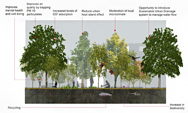 Esta transformação iria reconstituir esta zona cinzenta numa pequena floresta e riacho, prontos para suster actividades lúdicas, passeios e vida saudável para seres humanos e outras espécies.