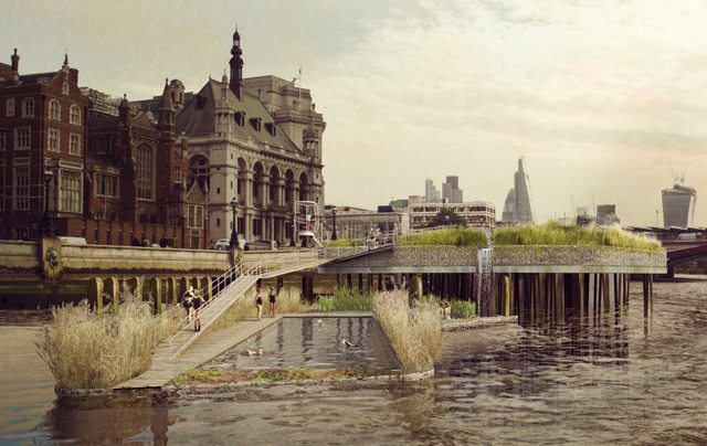 Uma das menções honrosas desta competição tenta resolver os problemas causados pelas cheias e poluição provindos das docas reais londrinas.