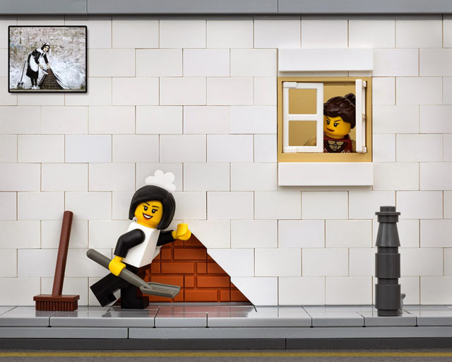 LEGO Banksy - Maid in London (a partir do original de Banksy Sweep It Under The Carpet) © Jeff Friesen / The Brick Fantastic
