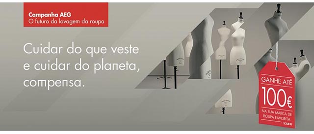 A AEG reconhece esse compromisso e por isso vai oferecer um reembolso de até 100€ na sua marca de roupa favorita, na compra de uma máquina de lavar roupa ou secador da marca. Para participar basta enviar o cupão de participação preenchido até 31 de Agosto de 2014 para a AEG, juntamente com cópia da factura de compra do modelo em campanha e da prova de compra da roupa. Depois, é só esperar pelo reembolso!