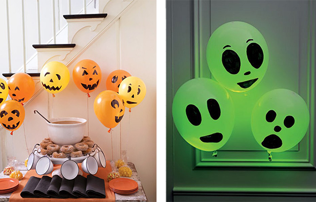 Pode criar alguns fantasmas utilizando um marcador preto para desenhar olhos arregalados e caras assustadoras em balões coloridos. Também pode utilizar balões fluorescentes ou inserir varetas fluorescentes dentro de balões brancos para obter um efeito mais dramático, sobretudo no escuro.
