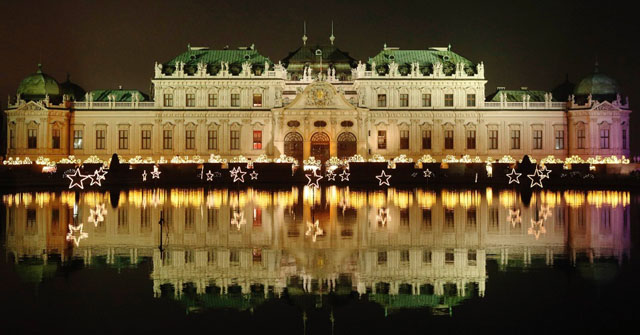 Palácio Belvedere com iluminações de Natal, em Viena, Áustria. | Foto © Heinz-Peter Bader / Reuters