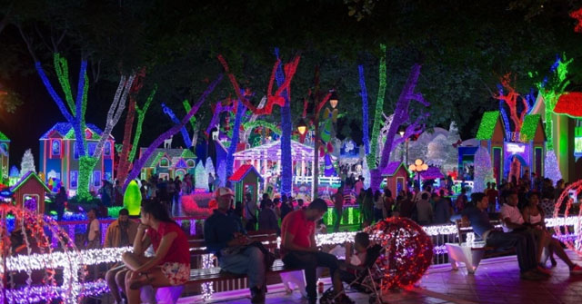 Instalação Natal Brilhante no parque Iberoamérica, em Santo Domingo, República Dominicana. | Foto © Fran Afonso / Xinhua
