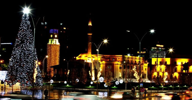Árvore de Natal na Praça Skanderbeg em Tirana, Albânia. | Foto © Hektor Pustina / AP