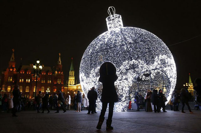 Bola de Natal gigante, com 11,5 metros de altura, em Moscovo, Rússia. | Foto © Maxim Zmeyev / Reuters