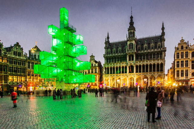 Uma instalação luminosa substitui a tradicional árvore de Natal na Grand Place em Bruxelas, Bélgica | Foto © Geert Vanden Wijngaert /AP