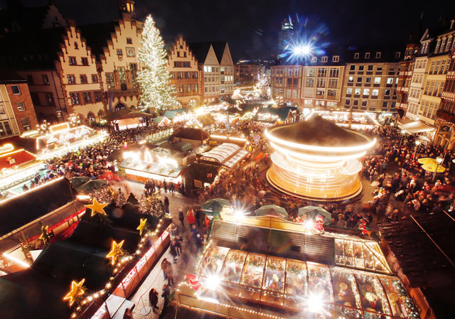 O tradicional Mercado de Natal na praça Roemerberg, em Frankfurt, Alemanha | Foto © Michael Probst / AP