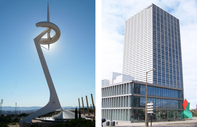 Torre de Montjuïc, Barcelona by Santiago Calatrava | Torre Burgo, Porto by Souto Moura | Wikimedia Commons