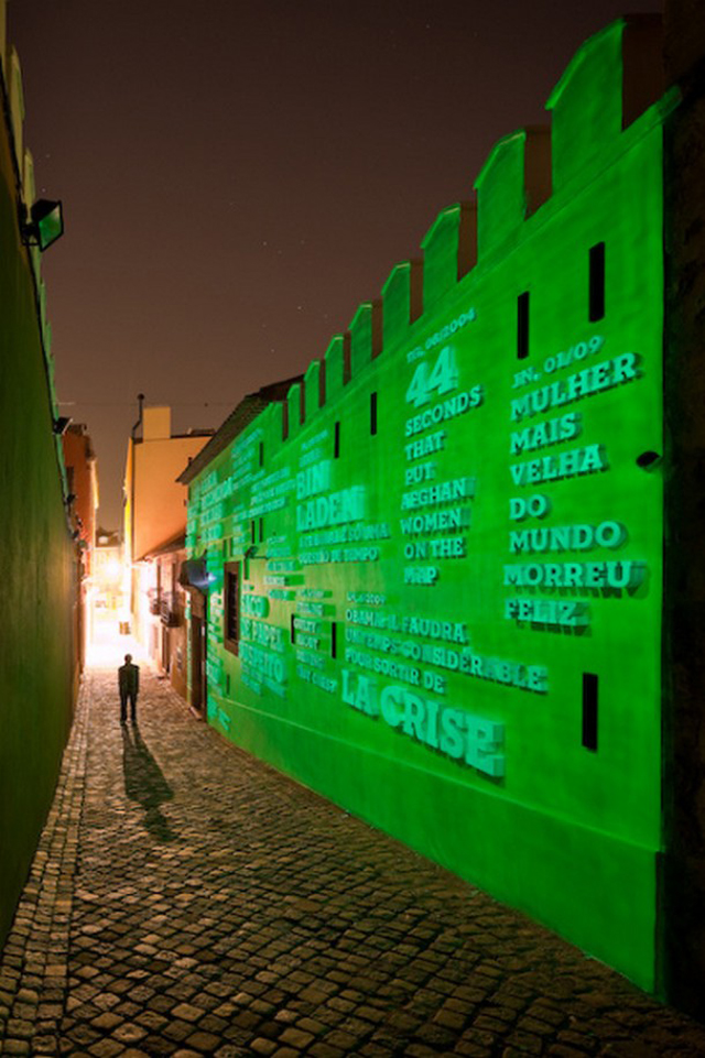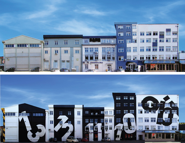 A mensagem transmitida por caracteres em fachadas ou paredes de edifícios ganha um enorme impacto: o seu conteúdo é realçado e o edifício acaba também por sobressair.