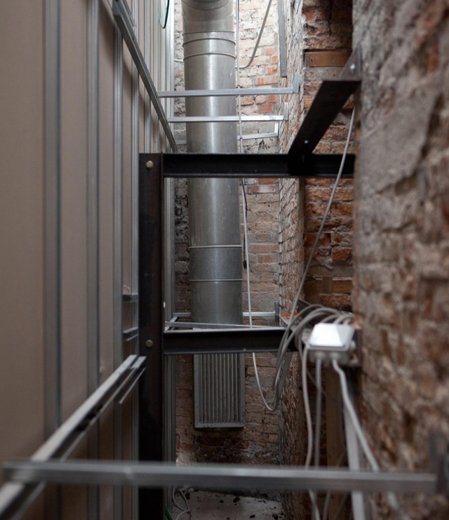 Na sala dedicada às paredes, para além dos inúmeros exemplos deste elemento, surge um protótipo de parede que parece respirar criado por Frank Barkow e Regine Leibinger, que se expande e comprime, culminando uma analogia da evolução deste componente.