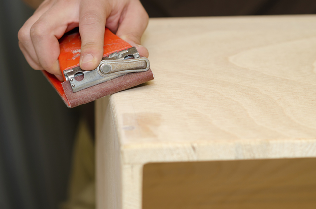 Antes de pintar, encerar ou envernizar o móvel, deverá passar novamente uma lixa fina por toda a superfície, de preferência manualmente e sempre no sentido dos veios da madeira. Este processo é essencial para obter uma pintura de efeito lacado. Seguidamente, passe uma esponja húmida para remover o pó e dilatar os poros da madeira.
