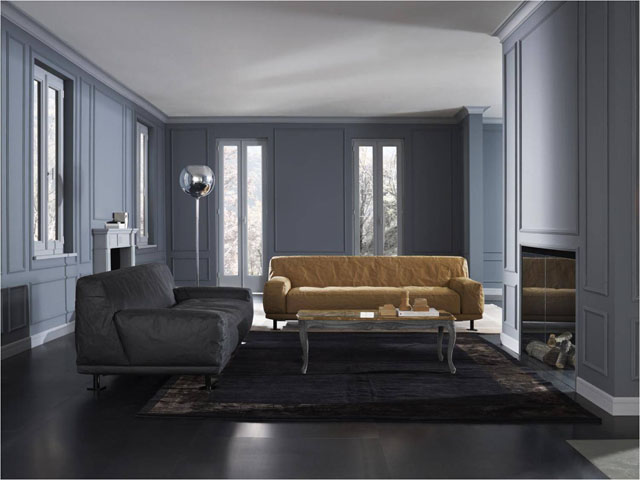 Também da Meritalia a grande novidade foi o sofá “NEWCASTLE”, design Giulio Iacchetti. Quando começou a traçar as primeiras linhas deste novo projeto, o designer foi sugestionado pelo pensamento de que um sofá, para cada criança, é um porto seguro, um castelo onde encontram conforto e proteção. Tal como a música que não muda quando nos tornamos adultos, o sofá também é sempre o nosso porto seguro, o nosso castelo macio… Este foi o motivo que o levou a estas geometrias monolíticas, um sofá com encosto concebido como uma grande contraforte, os braços desenhados com a forma de blocos de pedra, linhas fortemente caracterizadas e reconhecíveis, graças também à utilização inédita do revestimento DuraForm ® , um tecido artificial similar ao cartão, normalmente utilizado para as etiquetas de jeans: lavável, durável, respirável, capaz de dar uma personalidade forte ao novo sofá Meritalia, Newcastle.