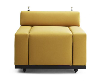 A poltrona CUBO está equipada com duas rodas que permitem a mobilidade e flexibilidade para o espaço interno.