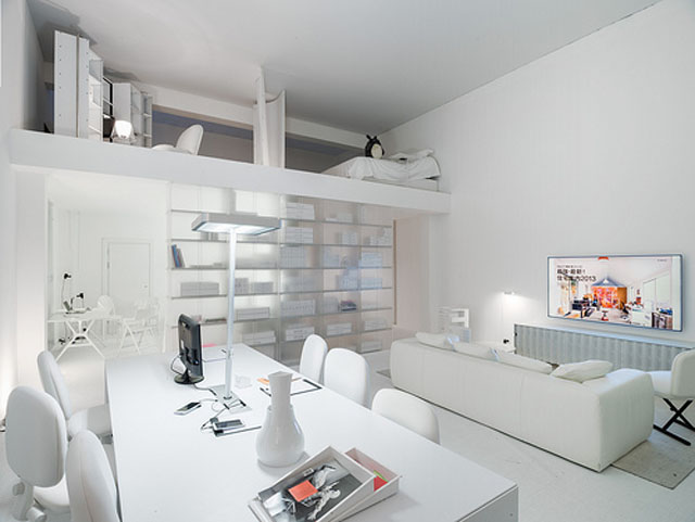 Sob o título “Il mondo che abiteremo” a feira internacional do móvel de Milão convidou um dos expoentes máximos da arquitetura internacional, Jean Nouvel, a realizar um projeto inovador: criar um escritório para viver. O arquiteto respondeu ao desafio e criou num espaço de 1200 m2, uma exposição composta por cinco espaços de trabalho únicos e singulares, para demonstrar que um ambiente de trabalho deve proporcionar criatividade, inspiração e prazer.