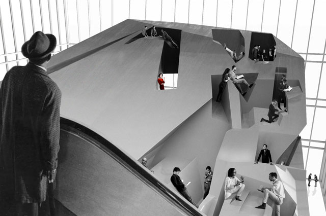 Talvez este olhar crítico tenha inspirado os autores deste projecto a desenvolver uma nova abordagem, através de uma ruptura radical com os ambientes de escritório tradicionais, projectados inteiramente em torno do conceito “sentado à secretária”, possibilitando antever um futuro onde trabalhar de pé ou deitado possa ser considerado uma prática normal.