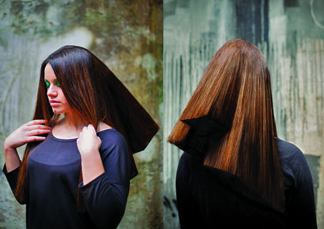 As formas geométricas de ângulos agudos, construídas com arames e absorvidas na textura do cabelo, remetem-nos para a arquitectura e moda dos anos 60 e 70. Diferentes linhas de cabelo assumem o papel de diferentes elementos arquitectónicos, realçados por diferentes cores, como um tributo à realidade construída.