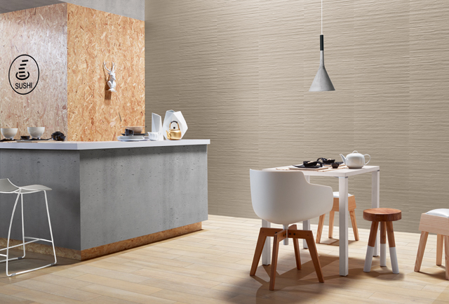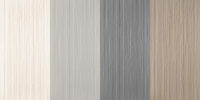 Inspirada nas estruturas de betão armado e no tradicional sistema de cofragem em madeira, apresenta uma textura suave e elegante com um ligeiro efeito estruturado.