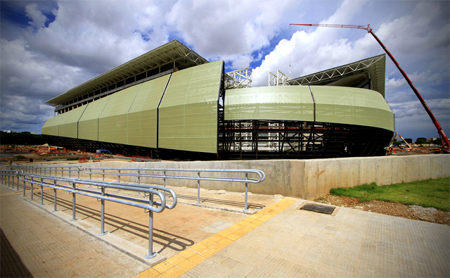 O novo estádio orgulha-se de ser construído com base em conceitos de sustentabilidade, equipado com um sistema de energia solar e de aproveitamento de água da chuva.