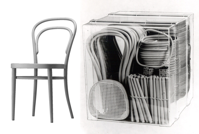 Le Corbusier foi um impulsionador na divulgação do mobiliário Thonet, ao inserir nos seus ambientes modernistas as cadeiras Thonet. A cadeira nº 214 de 1859 por exemplo, teve um enorme sucesso de venda. Foi o resultado de anos de experiência e foi desenvolvida com o objetivo de ser produzida em massa, tornando-se assim, o primeiro objeto de mobiliário industrial.