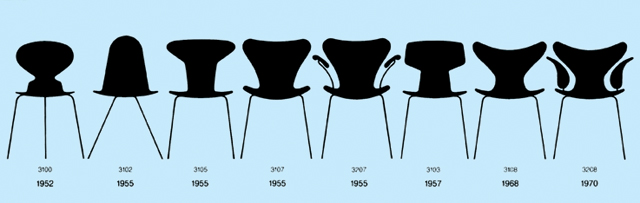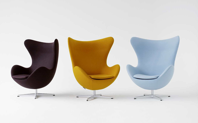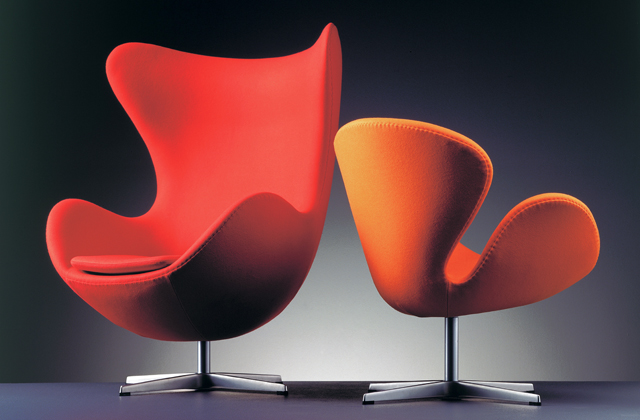 Ficaram famosas as poltronas Aegge (ovo), Svanen (cisne), Draben (gota) e Gryden (tigela), que decoravam os ambientes.