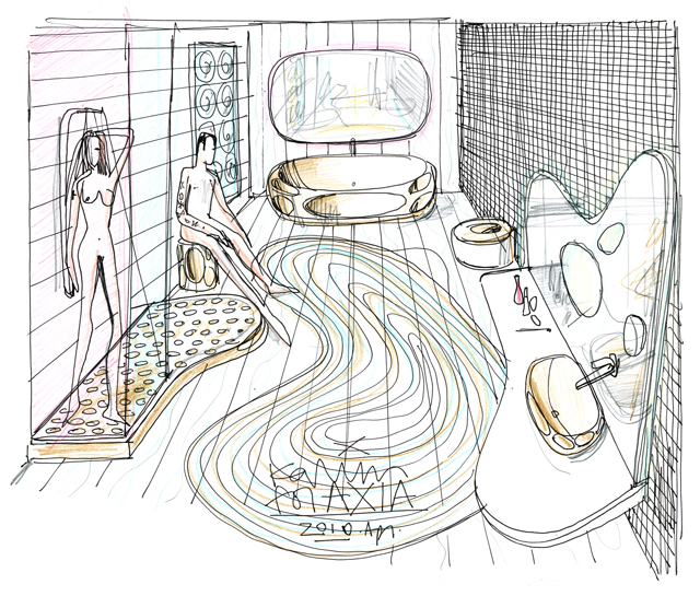 Para Karim Rashid, a funcionalidade é essencial mas, ao mesmo tempo, é importante criar emoções nas pessoas. Desde muito jovem que Karim é obcecado pelo desenho. “O meu pai é pintor, um artista e produtor de cenários para a televisão. Regularmente levava-me a Inglaterra para desenhar igrejas. Ensinou-me a ver, ensinou-me a perspectiva e que conseguiria desenhar qualquer coisa e tocar em todos os aspectos da nossa paisagem física”. Para Karim não há fronteiras para o que se pode criar. “Quando comecei a trabalhar com a Axia, estava interessado na vontade de explorar futuras oportunidades que pudessem ser encontradas numa casa de banho moderna e desviar-me de todos os arquétipos bem familiares, que estão presentes normalmente nas casas de banho contemporâneas”.