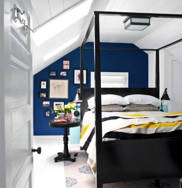 Nos quartos, sendo a cama o foco central, torna-se evidente que uma boa opção será destacar a parede da cabeceira com uma cor diferente, evidenciando este elemento. Fará sentido que a parede colorida tenha lugar atrás do olhar do morador.