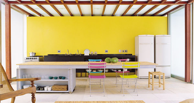 Nas cozinhas também podemos eleger a parede do lava-loiça ou fogão para colorir, ou a parede da mesa de refeições, caso exista.