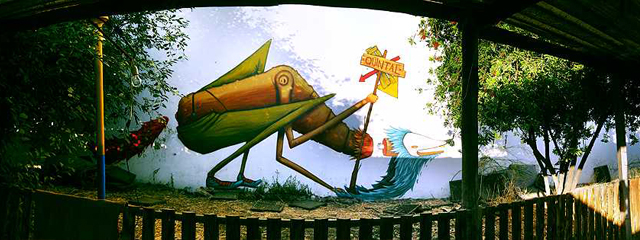 Eis uma vista mais enquadrada e feita à medida para um retiro colorido por entre os tecidos e maneirismos shanti e os cantos e recantos dos diferentes terraços deste bar/restaurante.