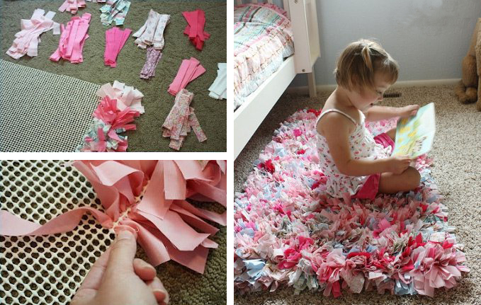 Utilizando, também, tiras de tecido e uma base de tapete antiderrapante, através de uma técnica bem simples de nós, poderá criar tapetes de diversas formas e tamanhos. Estes tapetes são muito económicos, fáceis de fazer e adaptam-se a diferentes espaços. Experimente utilizar tiras de turco para as casas-de banho.