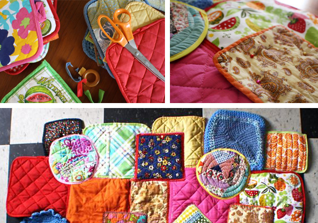 Já tem tapete para a cozinha? E na sua gaveta guarda uma série de pegas às quais nunca deu uso? Então a solução é juntar todas as pegas num tapete divertido e super criativo!