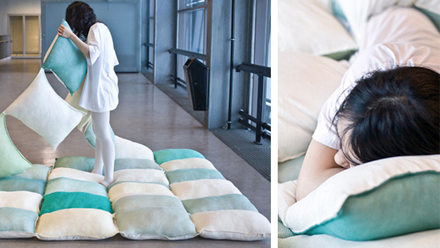 Sentar, deitar, esticar, moldar, enrolar... tudo isto é possível num tapete que é uma simples combinação de almofadas. Não só as crianças mas também os adultos vão adorar!