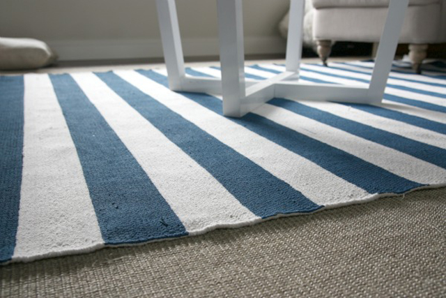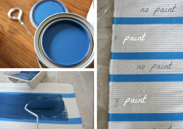 Se não consegue encontrar o tapete com a cor e padrão que deseja, pode optar por comprar tinta e fazê-lo você mesmo sobre um tapete de tecelagem plana.