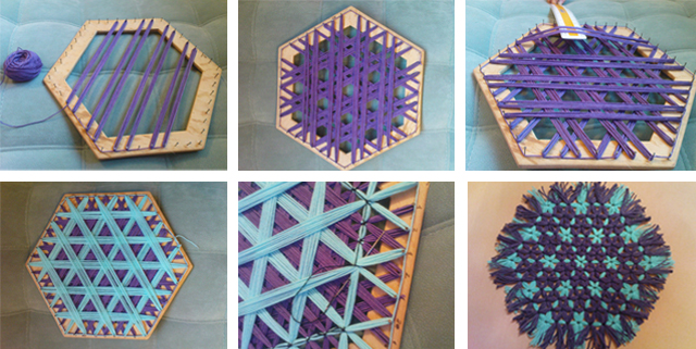 Para executar o tear, recorra a um suporte de madeira e alguns pregos espetados nas extremidades. Com lã ou corda, una os pregos dos lados opostos e com outra cor una diferentes diagonais. Com uma linha e agulha, junte os pontos de intersecção das duas cores. Corte as pontas da lã, amarradas nos pregos e admire o resultado final...